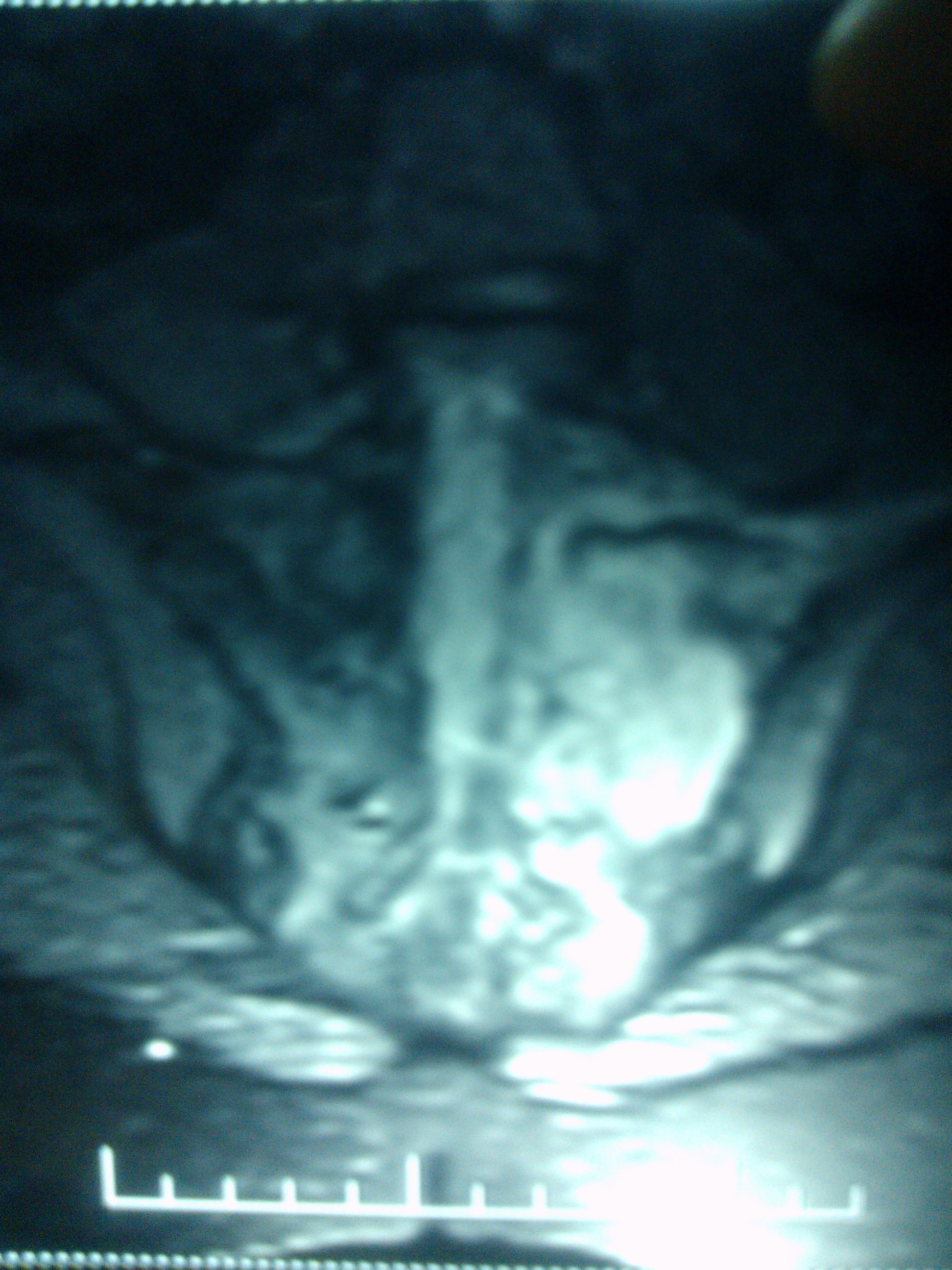 She was carrying a good quality Radiograph of both S.I.Joints AP view Reported Sacroilitis, left side