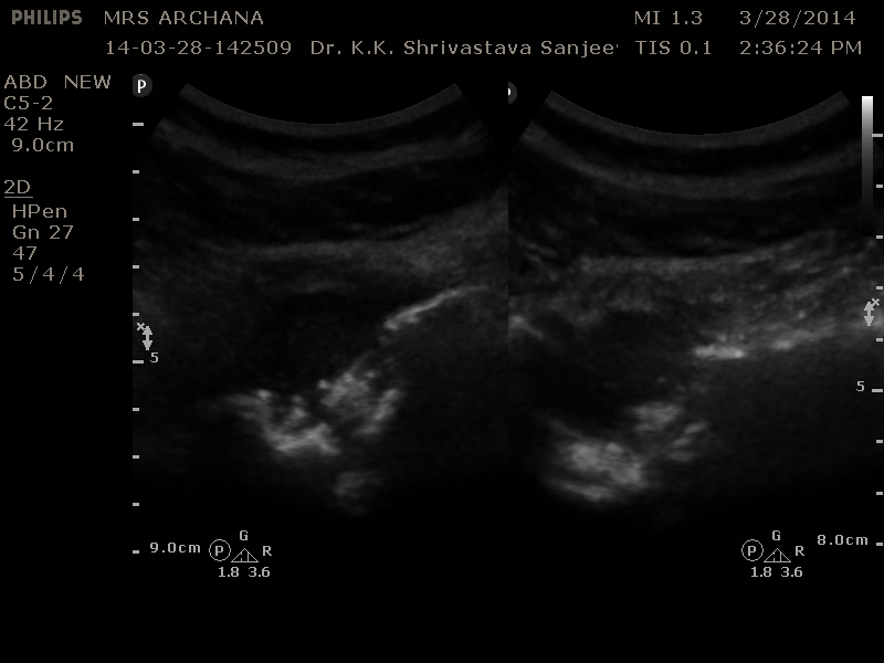 The scan transducer was changed to curvilinear Multifrequency probe ( 5-3 Mhz).